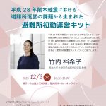 内容:平成28年熊本地震における避難所運営の課題から生まれた避難所初動運営キット 講師:竹内 裕希子 さん(熊 […]